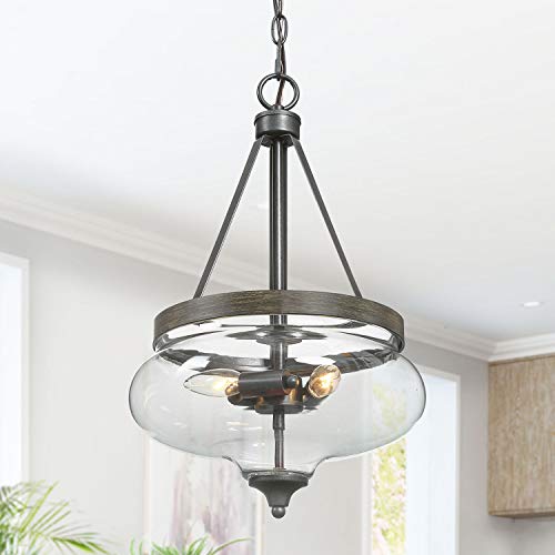 sears KSANA Glass Pendant Lighting Fixture, Farmhouse Chandelier with Wood Grain Finish for Dining Room, Entryway, Kitchen Island, 12.5 D